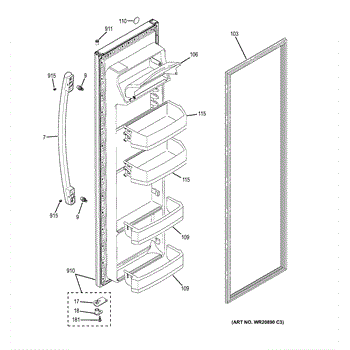 Replacement door bin for side-by-side refrigerators. Installs on the inner door to store condiments, bottles, and jars. Replace if cracked or broken.