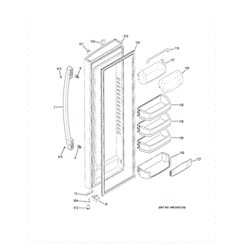 The Door Bin is an OEM part for GE refrigerators. It is a convenient storage compartment located on the interior of the refrigerator door, designed to hold and organize smaller items such as condiments, jars, or beverages.