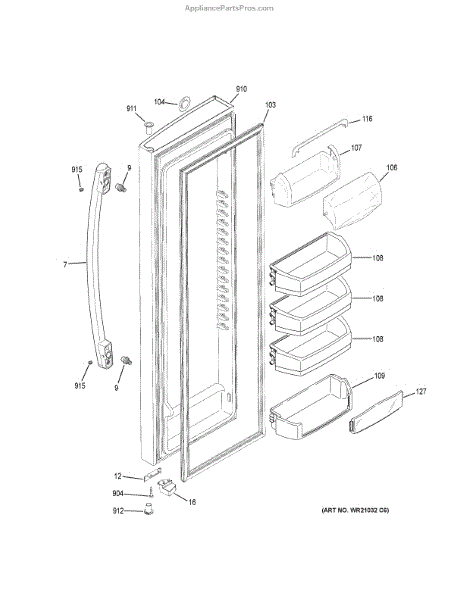 The Door Bin is an OEM part for GE refrigerators. It is a convenient storage compartment located on the interior of the refrigerator door, designed to hold and organize smaller items such as condiments, jars, or beverages.