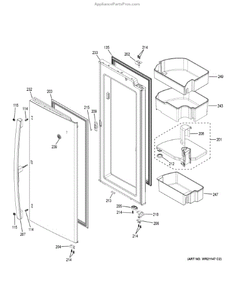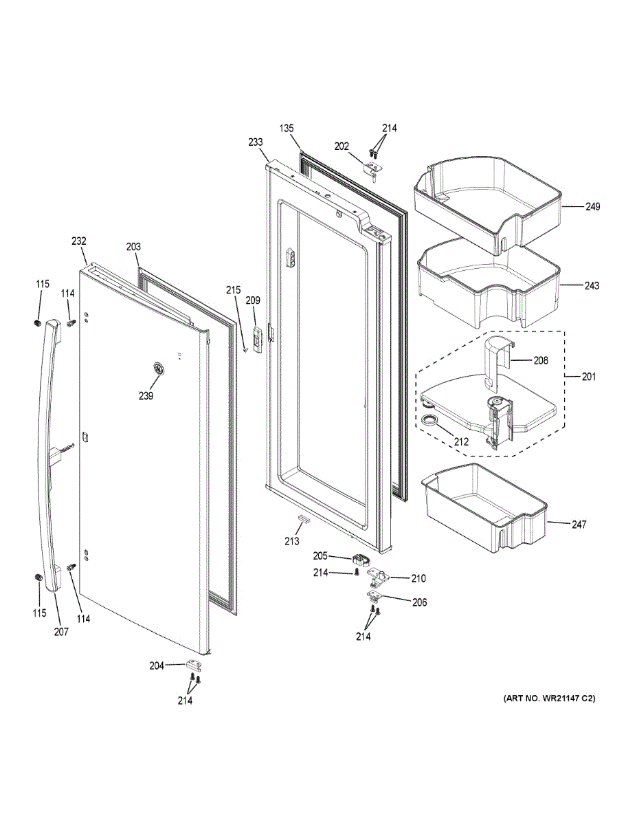 Parts for Ge PFD28KBLCTS: Fresh Food Door - Rh Parts
