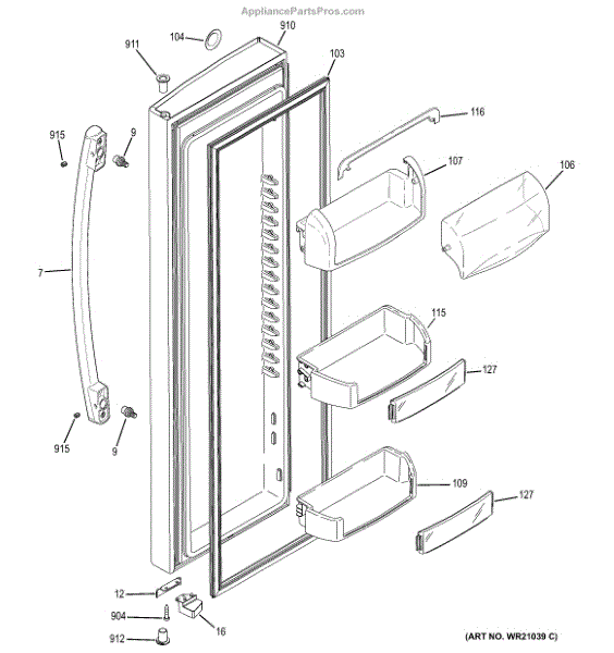 The Door Bin is an OEM part for GE refrigerators. It is a convenient storage compartment located on the interior of the refrigerator door, designed to hold and organize smaller items such as condiments, jars, or beverages.