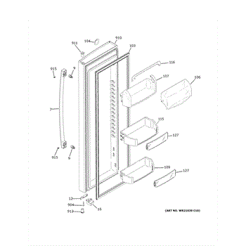 The Door Bin is an OEM part for GE refrigerators. It is a convenient storage compartment located on the interior of the refrigerator door, designed to hold and organize smaller items such as condiments, jars, or beverages.