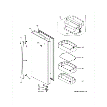 Seals the refrigerator fresh food compartment door to maintain temperature and prevent warm air entry. Replace if torn, cracked, or loose. Verify fit.