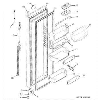 Replacement door bin for side-by-side refrigerators. Mounts inside the door to organize condiments, jars, and beverages. Replace if cracked or broken.
