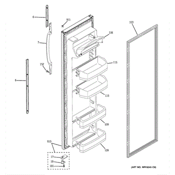 Replacement door bin for side-by-side refrigerators. Installs on the inner door to store condiments, bottles, and jars. Replace if cracked or broken.