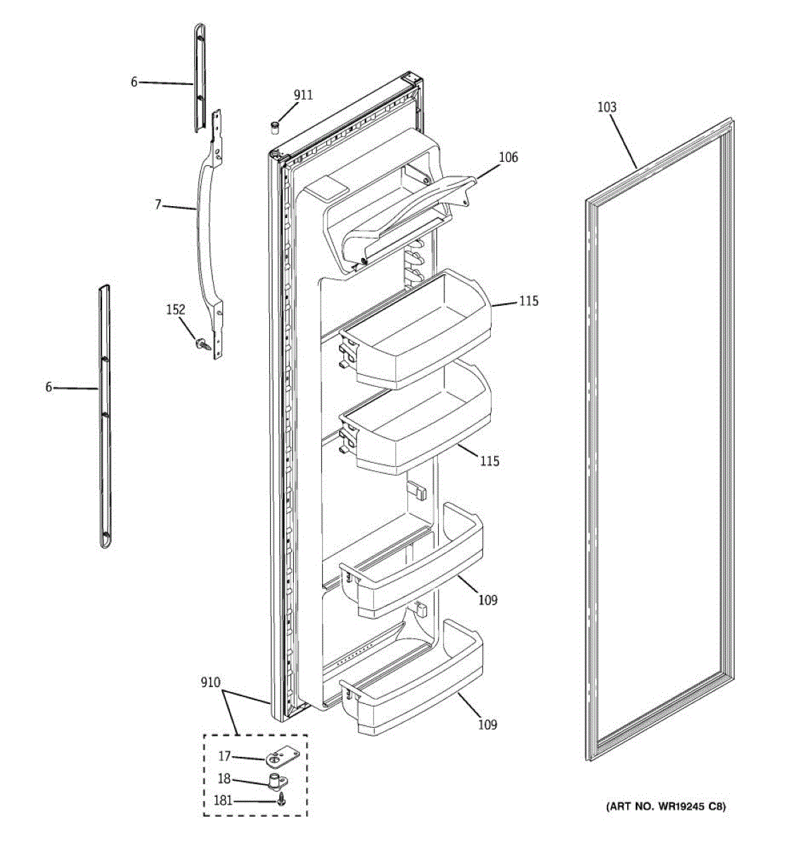 Replacement dairy door for refrigerator. Snaps into door to create covered compartment for butter and cheese. Needed when original is cracked or broken.
