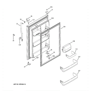 Seals the fresh food door to maintain temperature and prevent air leaks. Replace if you notice condensation, frost buildup, or warm air entering. Confirm fit with your model number.