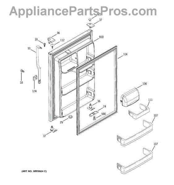 Seals the fresh food door to maintain temperature and prevent air leaks. Replace if you notice condensation, frost buildup, or warm air entering. Confirm fit with your model number.
