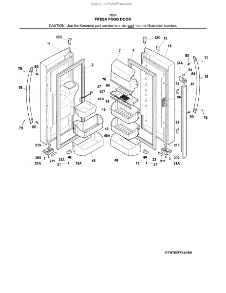 Parts for Kenmore 253.7034341C (2537034341C, 253 7034341C): Fresh Food Door Parts