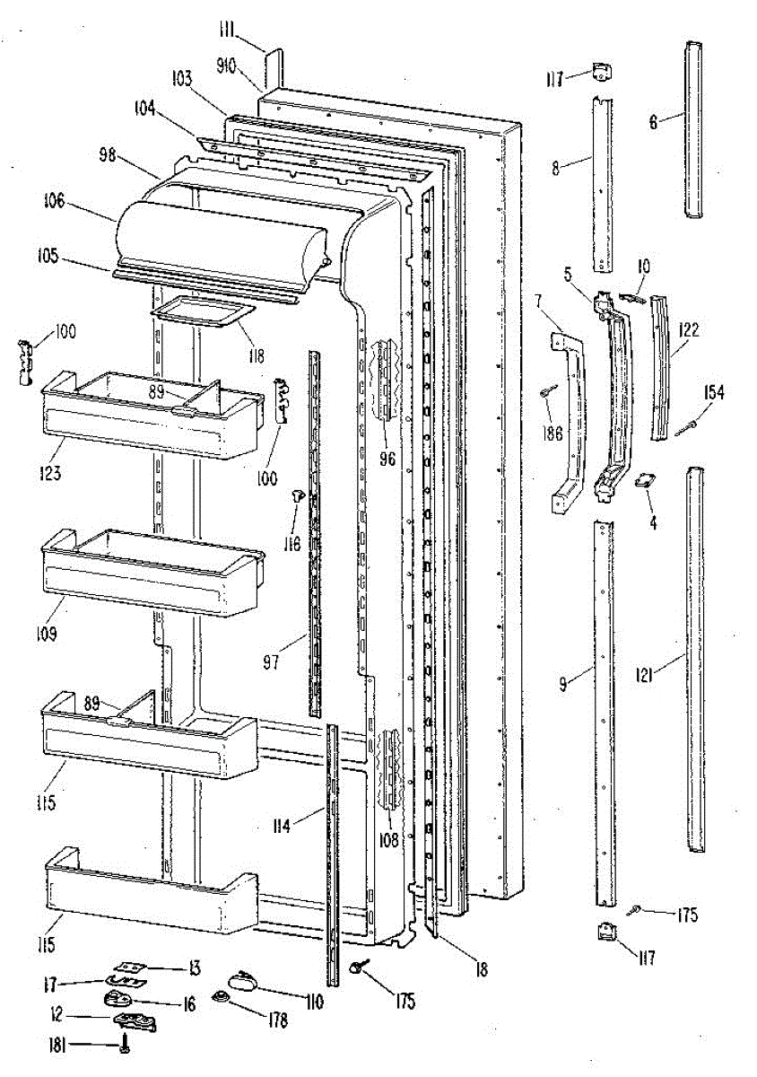 Parts for Kenmore 363.8592712 (3638592712, 363 8592712): Fresh Food Door Parts