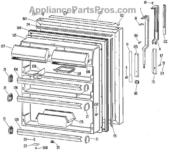 Refrigerator door trim piece that covers the edge of the door panel. Replace if your trim is cracked, broken, discolored, or missing for a clean look.