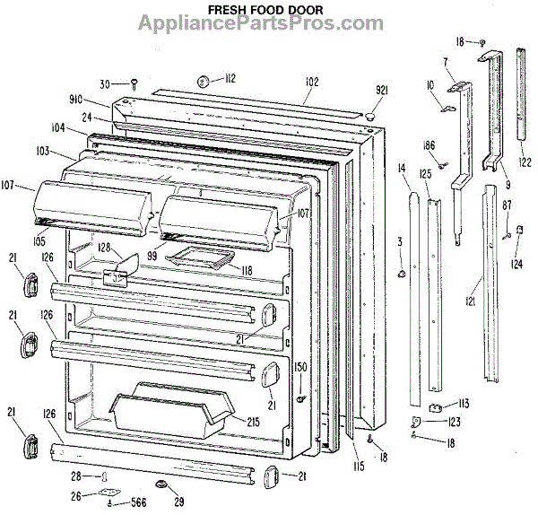 Refrigerator door trim piece that covers the edge of the door panel. Replace if your trim is cracked, broken, discolored, or missing for a clean look.