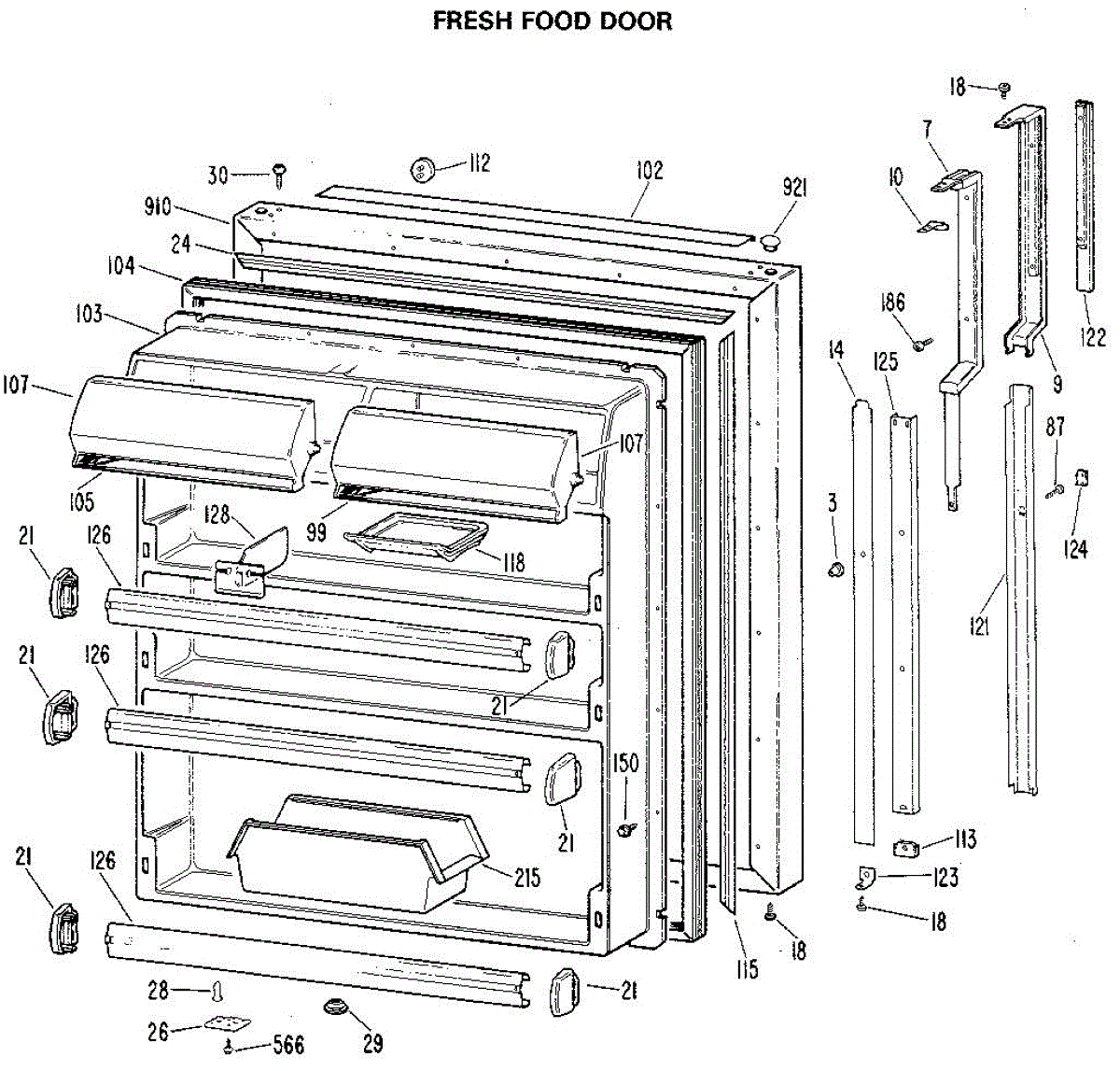 Seals the fresh food door to keep cold air in and prevent temperature loss. Replace if cracked, warped, or loose to restore efficiency. Confirm fit.