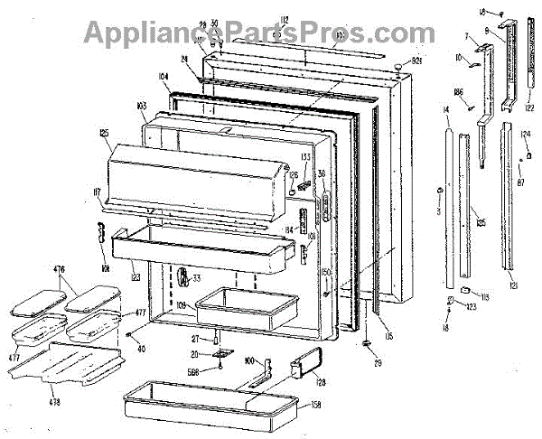 Refrigerator door trim piece that covers the edge of the door panel. Replace if your trim is cracked, broken, discolored, or missing for a clean look.