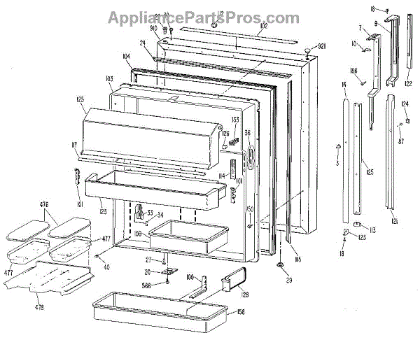Refrigerator door trim piece that covers the edge of the door panel. Replace if your trim is cracked, broken, discolored, or missing for a clean look.