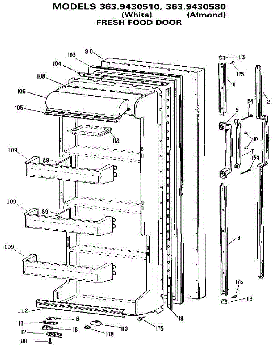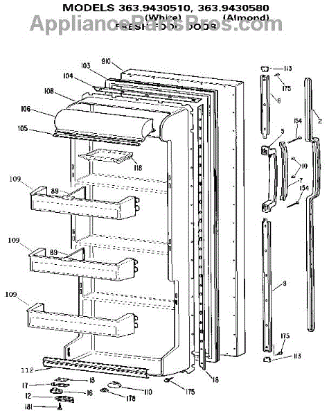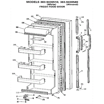 Parts for Kenmore 363.9430580 (3639430580, 363 9430580): Fresh Food Door Parts