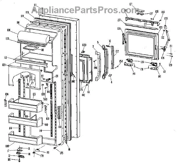 Hardware fasteners for securing refrigerator door panels and components. Includes screws, nuts, and washers for assembly. Replace missing or stripped pieces.