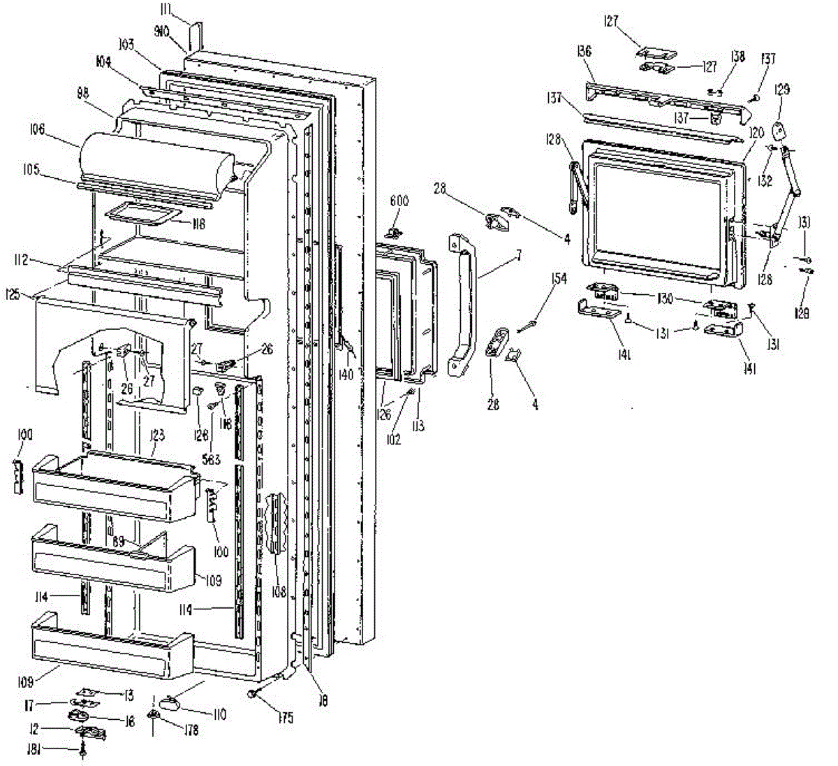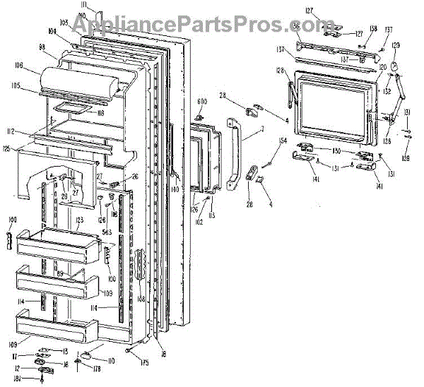 Hardware fasteners for securing refrigerator door panels and components. Includes screws, nuts, and washers for assembly. Replace missing or stripped pieces.