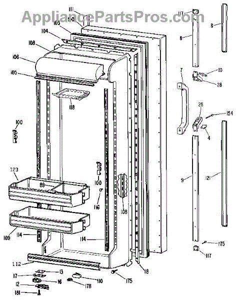 Parts for Kenmore 363.9524780 (3639524780, 363 9524780): Fresh Food Door Parts