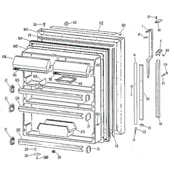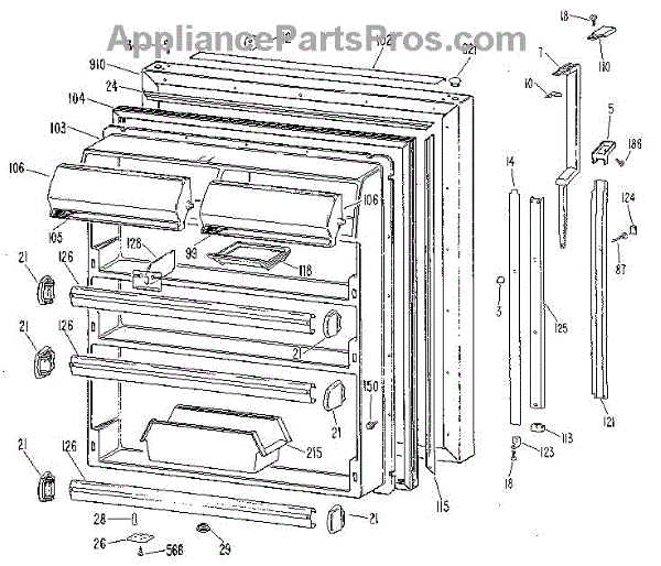 Hardware fasteners for securing refrigerator door panels and components. Includes screws, nuts, and washers for assembly. Replace missing or stripped pieces.