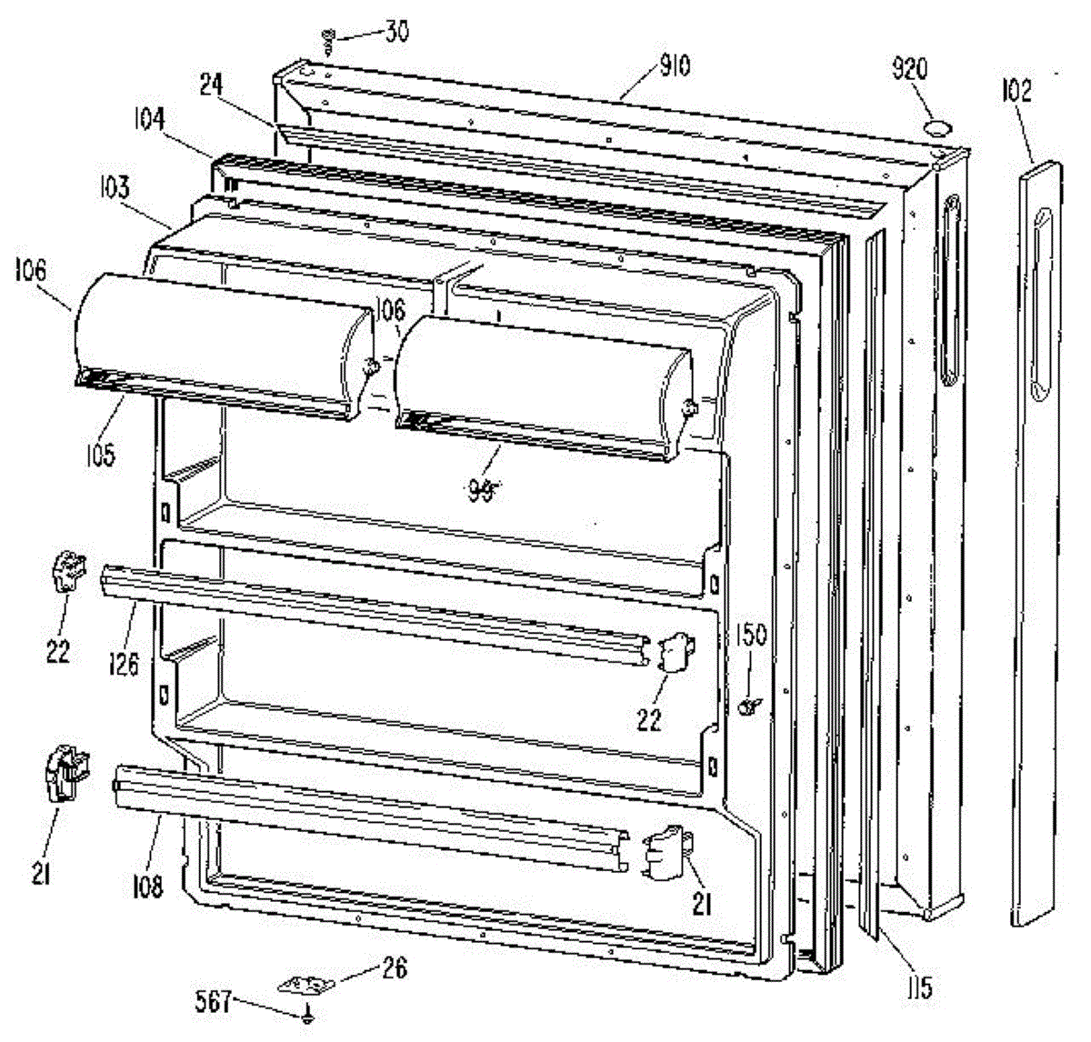 Retainer strip for refrigerator shelves and bins. Secures components in place and prevents shifting. Replace if cracked, broken, or missing for proper fit.