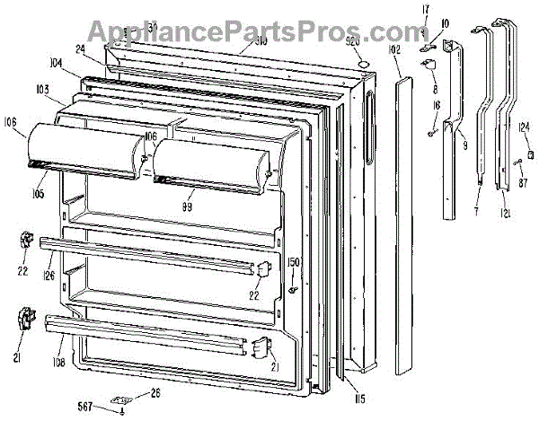 Parts for Kenmore 363.9606581 (3639606581, 363 9606581): Fresh Food Door Parts