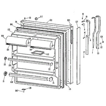 Hardware fasteners for securing refrigerator door panels and components. Includes screws, nuts, and washers for assembly. Replace missing or stripped pieces.