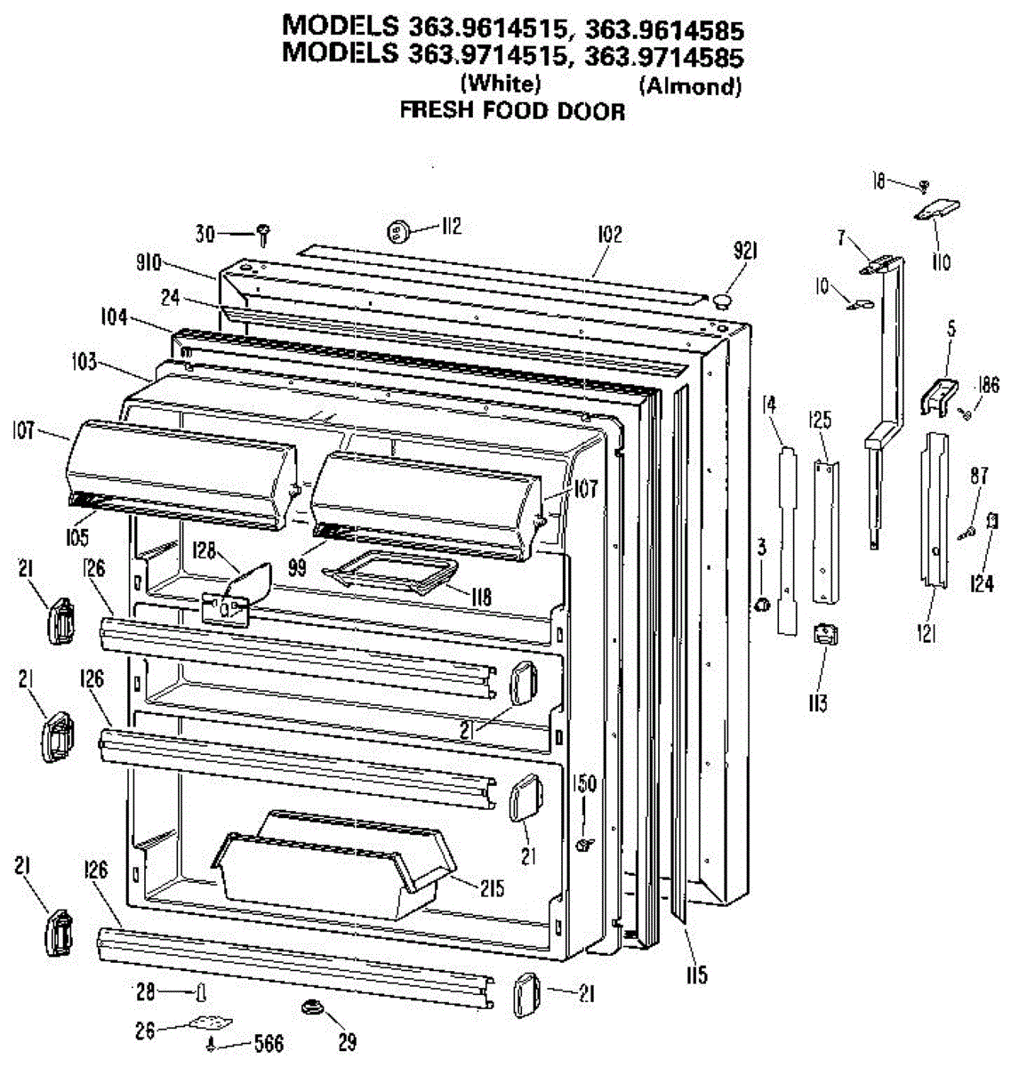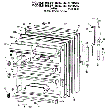 Parts for Kenmore 363.9614585 (3639614585, 363 9614585): Fresh Food Door Parts