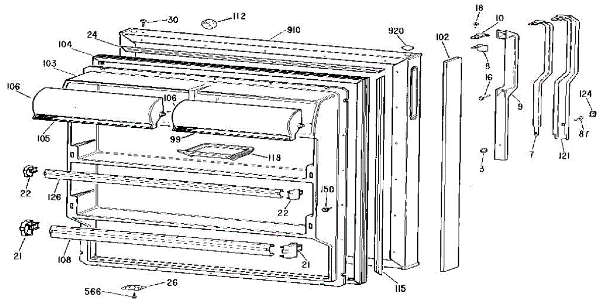 Parts for Kenmore 363.9616377 (3639616377, 363 9616377): Fresh Food Door Parts