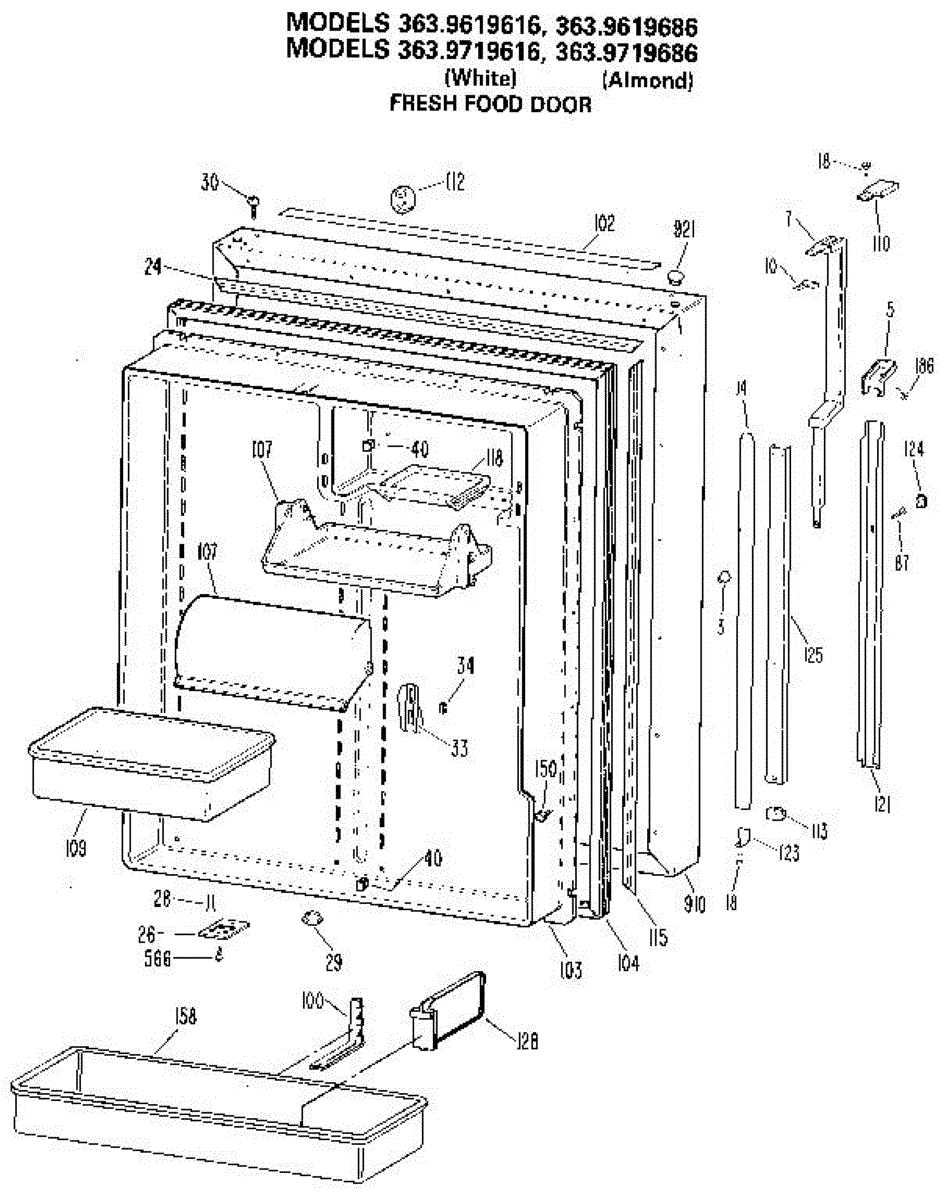 Seals the fresh food door to prevent cold air loss and maintain temperature. Replace if cracked, torn, or not sealing properly. Verify fit by model.