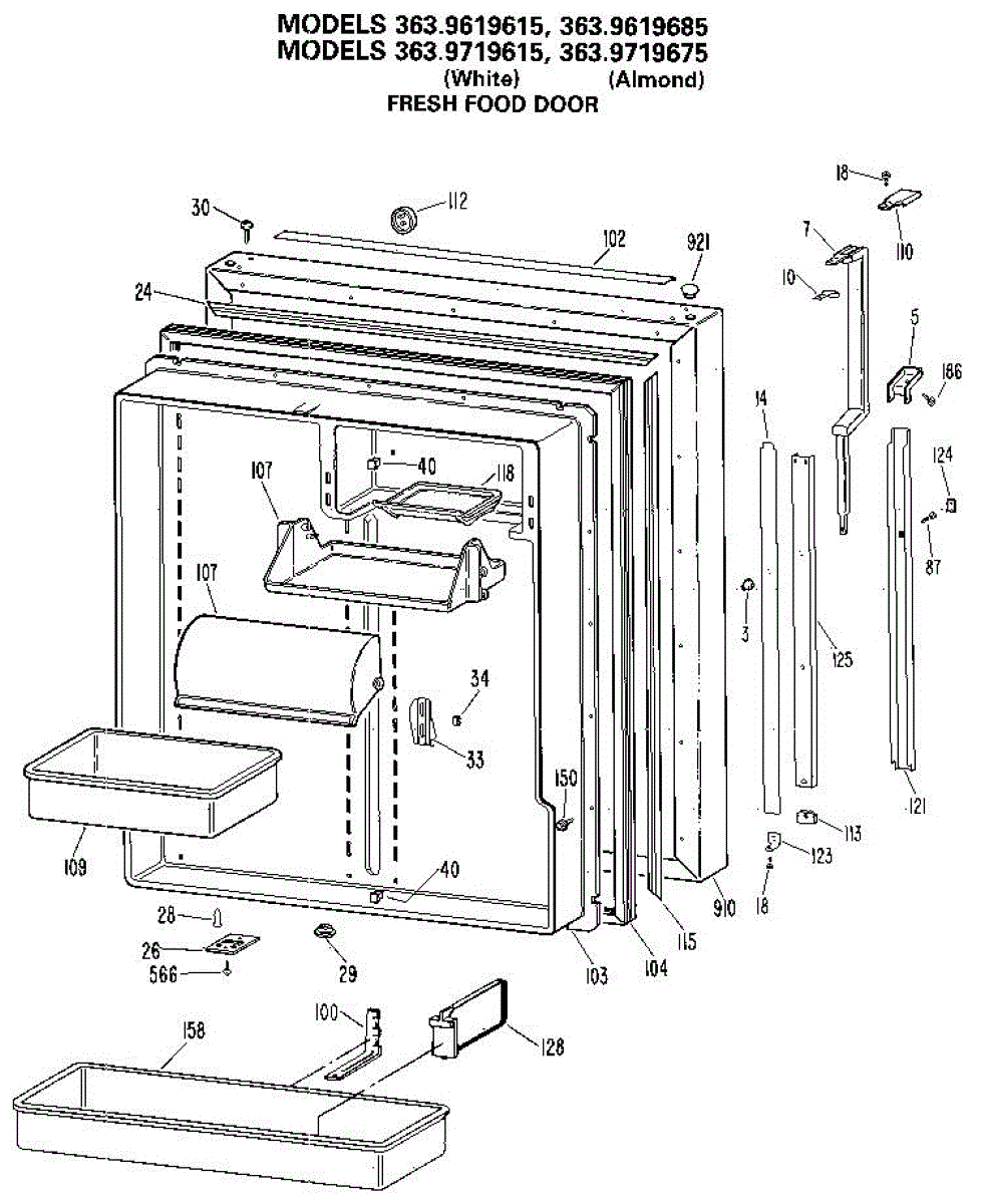 Seals the fresh food door to prevent cold air loss and maintain temperature. Replace if cracked, torn, or not sealing properly. Verify fit by model.