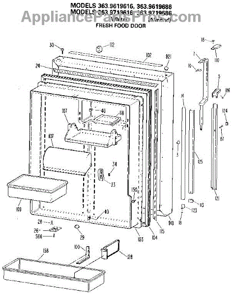 Seals the fresh food door to prevent cold air loss and maintain temperature. Replace if cracked, torn, or not sealing properly. Verify fit by model.
