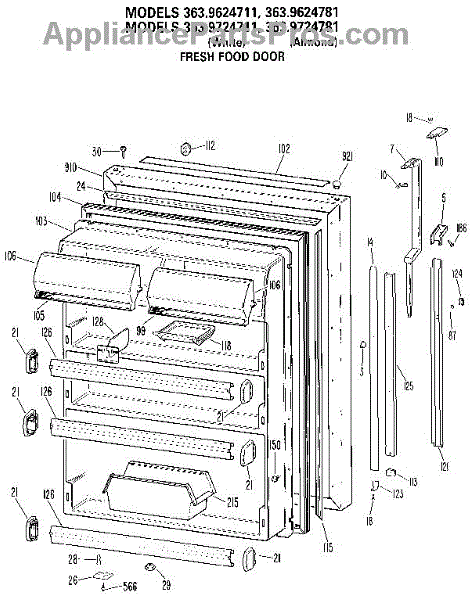 Refrigerator door trim piece that covers the edge of the door panel. Replace if your trim is cracked, broken, discolored, or missing for a clean look.