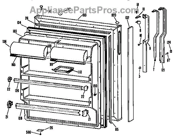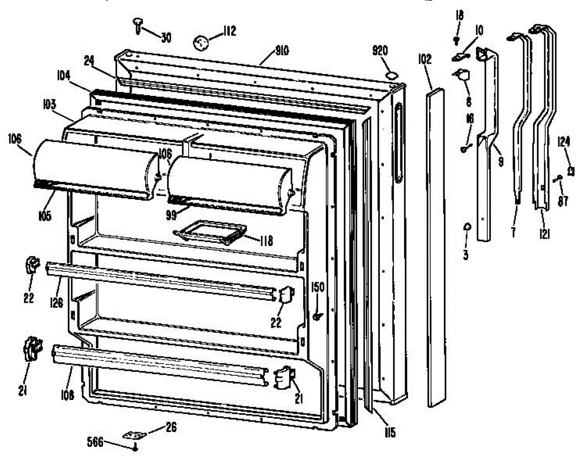 Hardware fasteners for securing refrigerator door panels and components. Includes screws, nuts, and washers for assembly. Replace missing or stripped pieces.