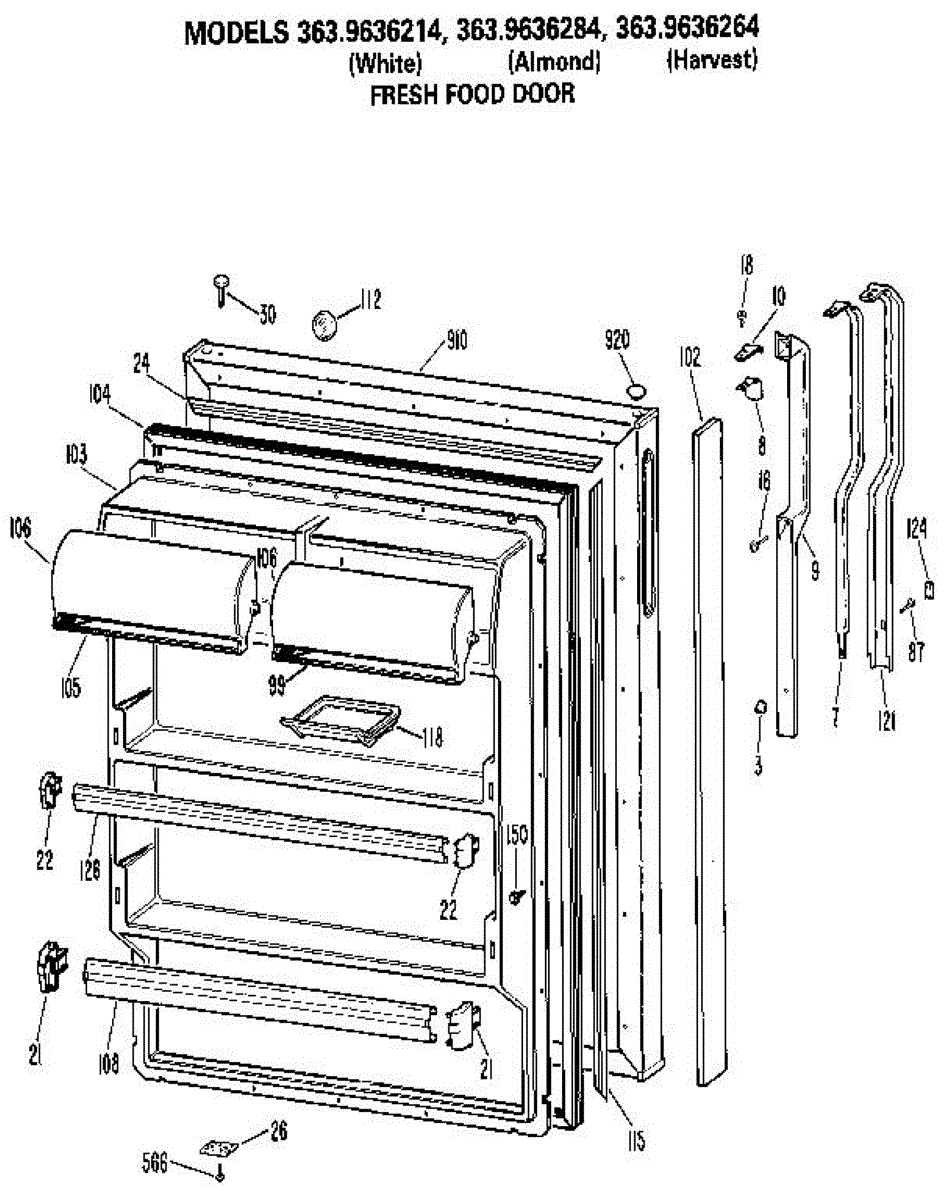 Hardware fasteners for securing refrigerator door panels and components. Includes screws, nuts, and washers for assembly. Replace missing or stripped pieces.