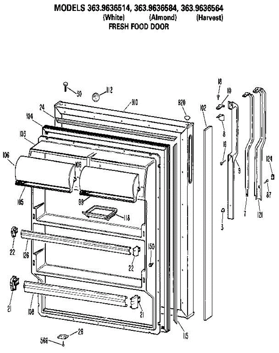 Hardware fasteners for securing refrigerator door panels and components. Includes screws, nuts, and washers for assembly. Replace missing or stripped pieces.