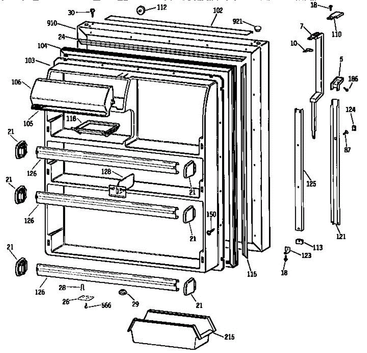 Seals your refrigerator's fresh food door to maintain temperature and prevent air leaks. Replace if you notice condensation, mold, or warm spots inside.