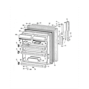 Hardware fasteners for securing refrigerator door panels and components. Includes screws, nuts, and washers for assembly. Replace missing or stripped pieces.