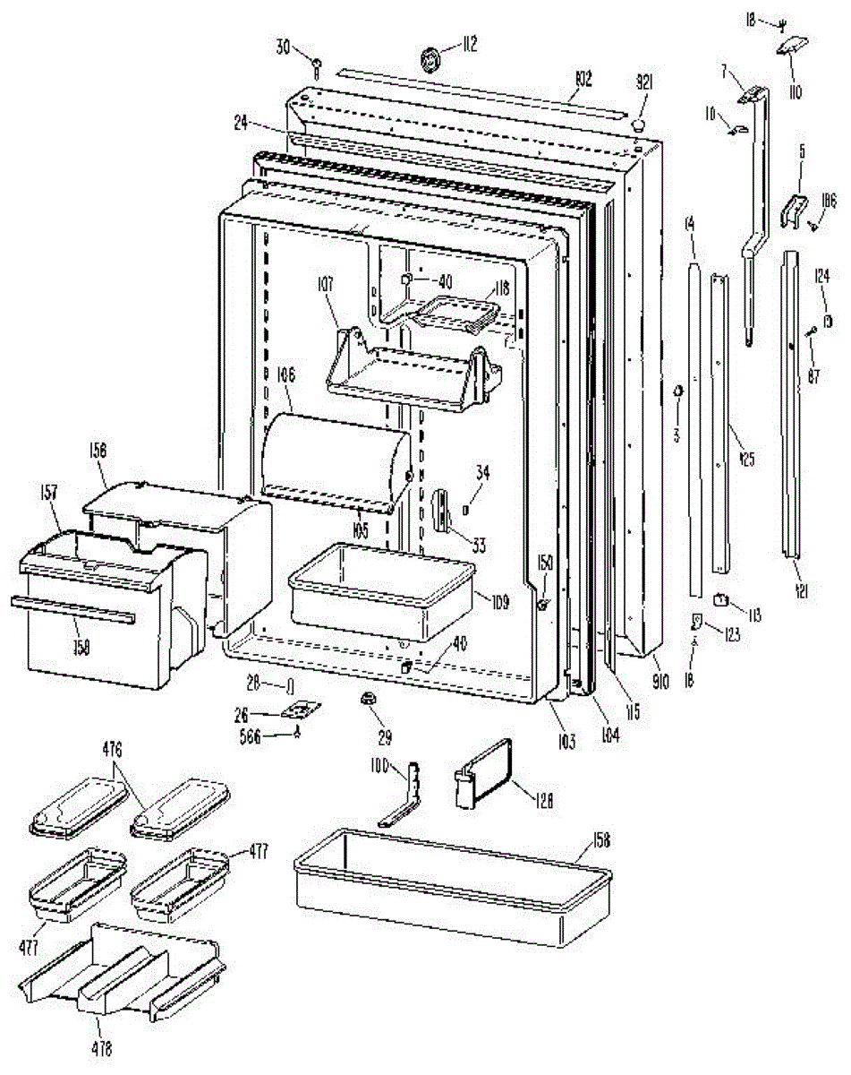 Seals your refrigerator's fresh food door to maintain temperature and prevent air leaks. Replace if you notice condensation, mold, or warm spots inside.