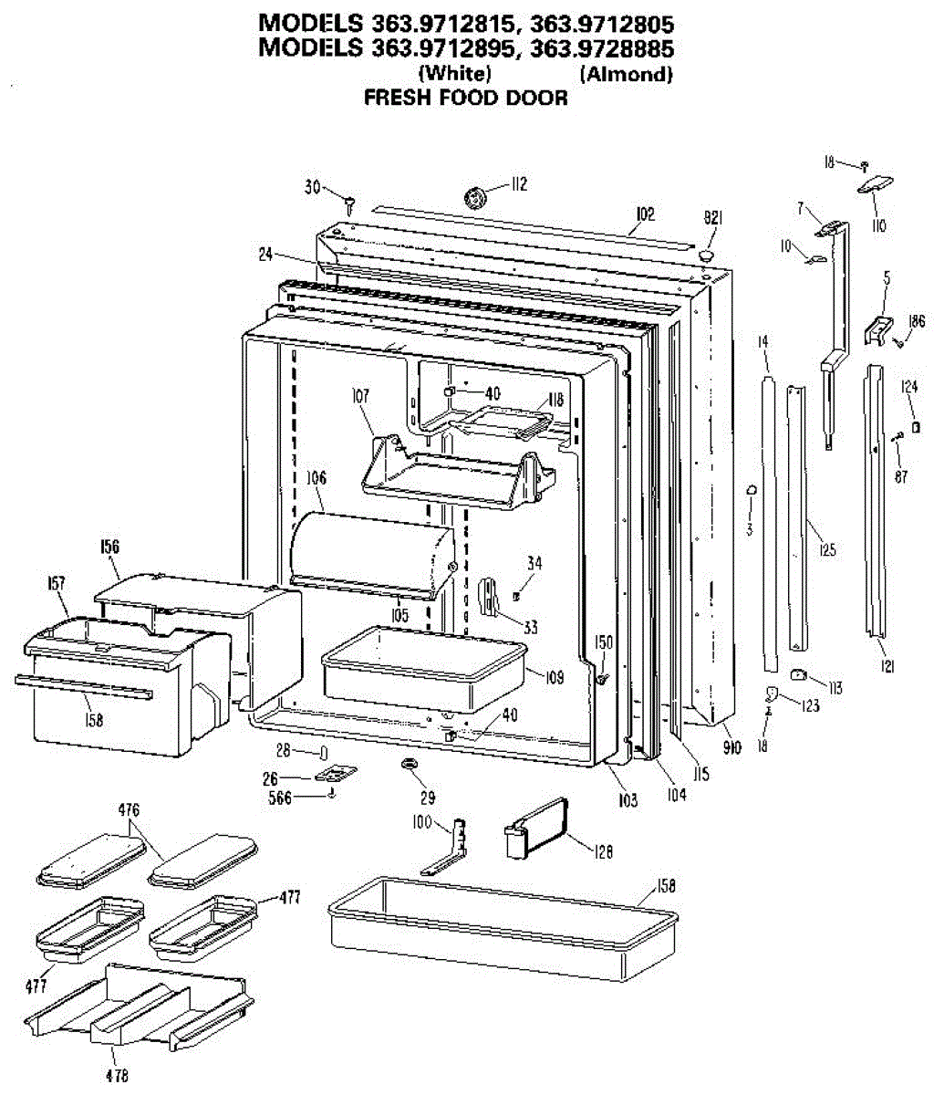 Seals your refrigerator's fresh food door to maintain temperature and prevent air leaks. Replace if you notice condensation, mold, or warm spots inside.