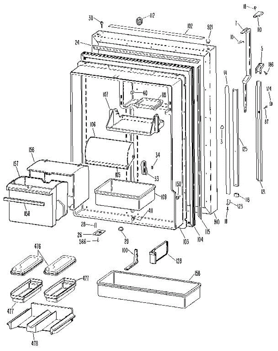 Parts for Kenmore 363.9715704 (3639715704, 363 9715704): Fresh Food Door Parts