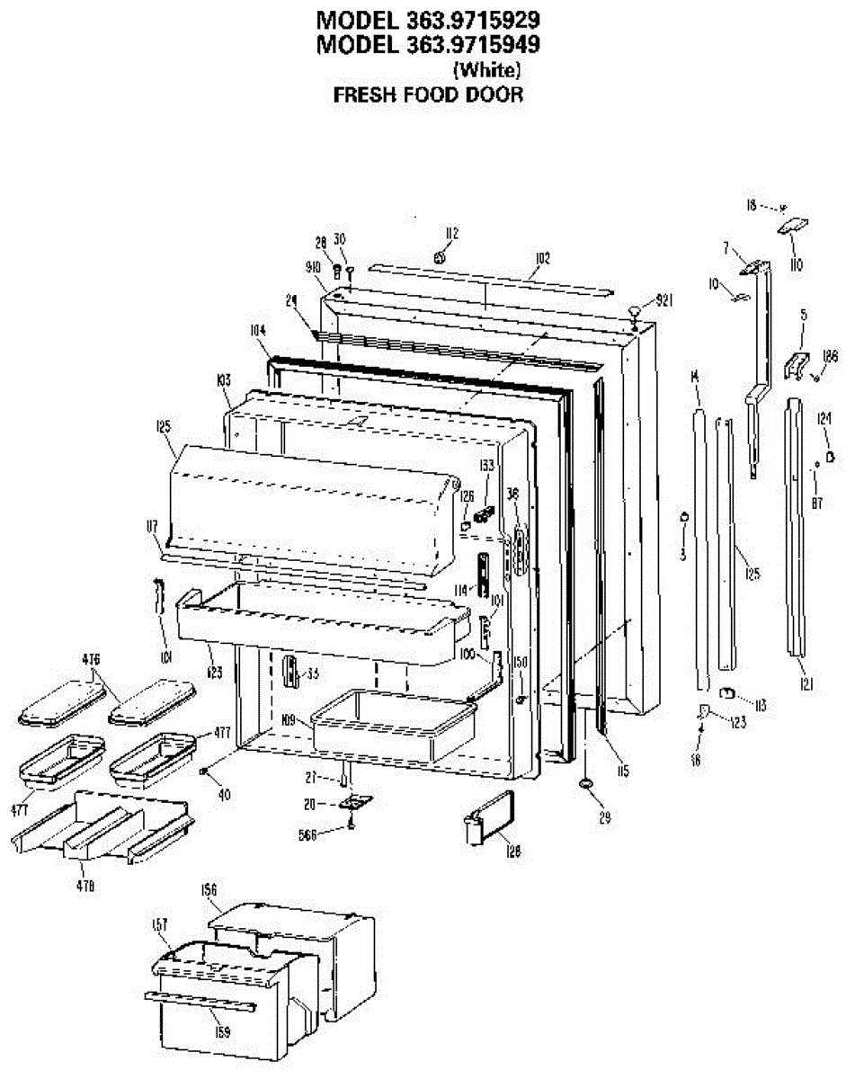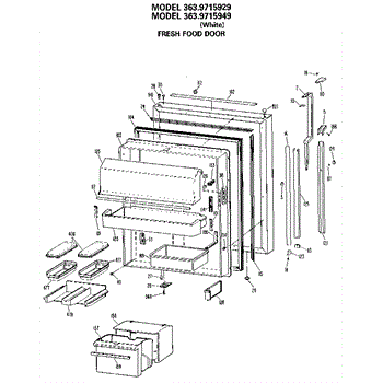 Door bin module assembly for refrigerator quick-serve compartments. Replace this structural component if cracked, broken, or missing to restore organization.