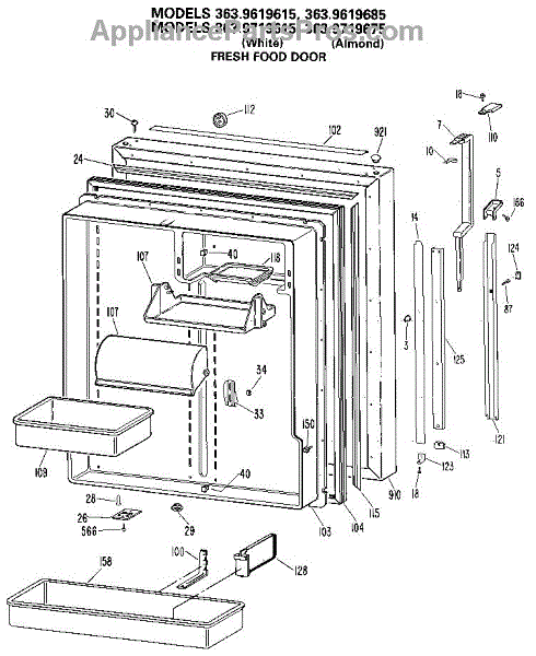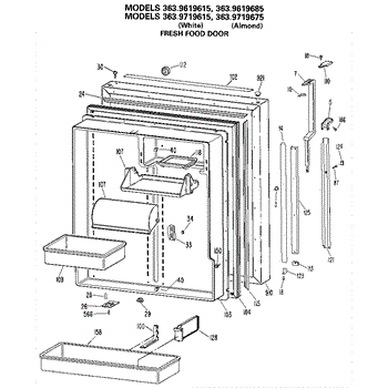 Parts for Kenmore 363.9719685 (3639719685, 363 9719685): Fresh Food Door Parts