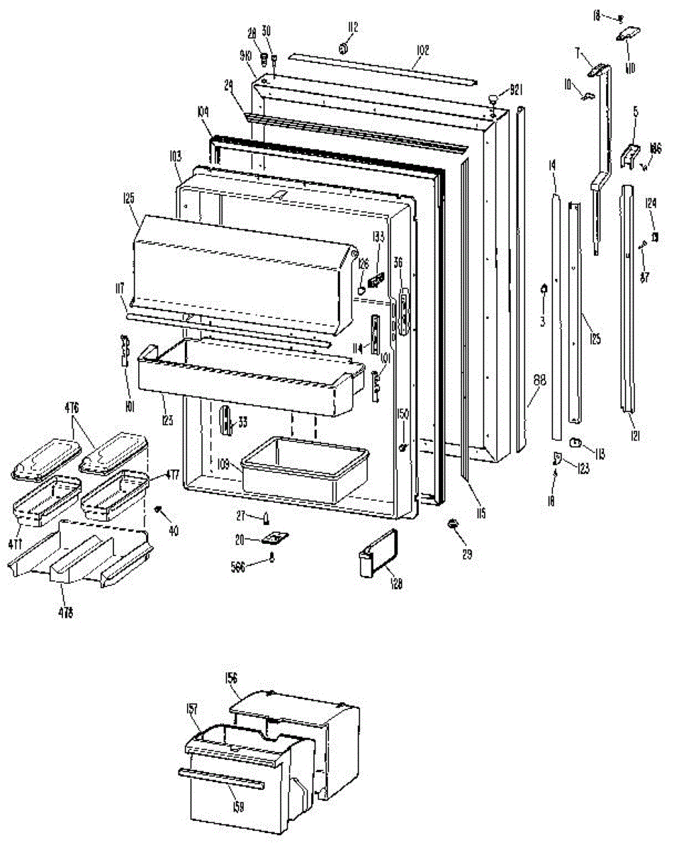 Door bin module assembly for refrigerator quick-serve compartments. Replace this structural component if cracked, broken, or missing to restore organization.