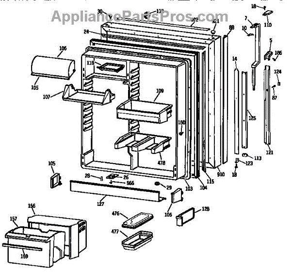 Refrigerator door trim piece that covers the edge of the door panel. Replace if your trim is cracked, broken, discolored, or missing for a clean look.
