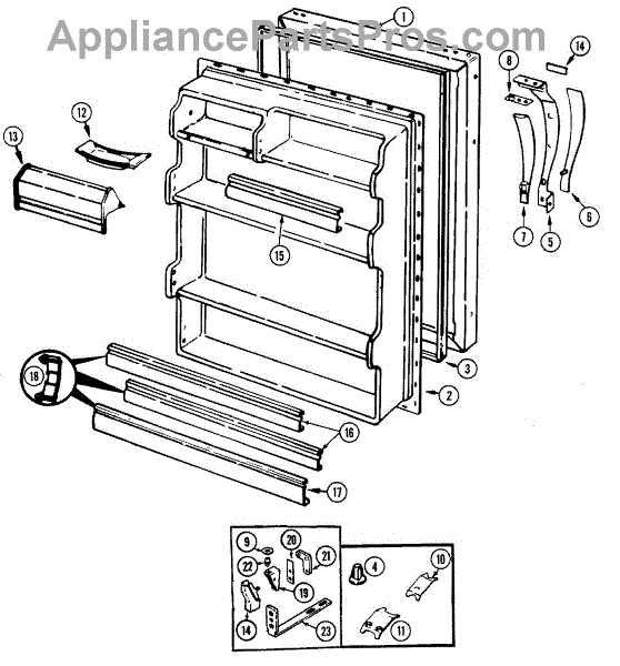Parts for Magic Chef RB151PFA / DG13C: 04 - Fresh Food Door Parts