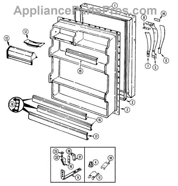 Parts for Magic Chef RB171PA: 04 - Fresh Food Door Parts