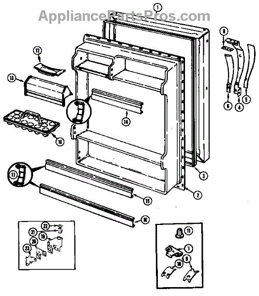 Parts for Maytag GT17X43A/DF36A: Fresh Food Door Parts