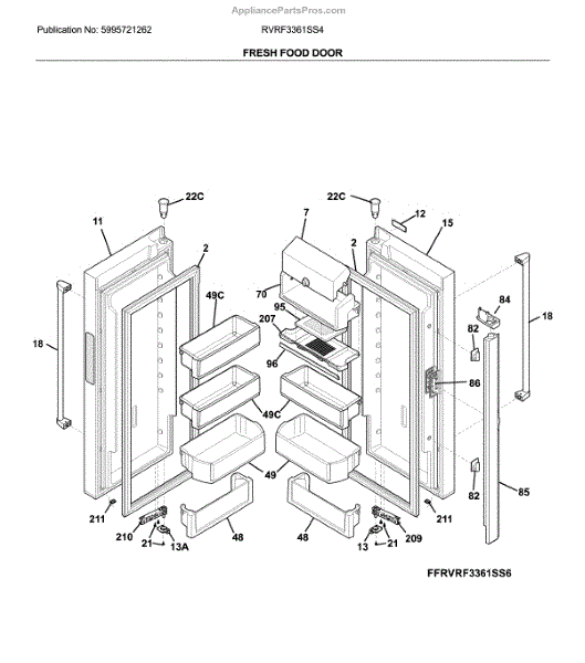 Parts for Crosley RVRF3361SS4: Fresh Food Doors Parts