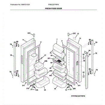 The Door bin is an OEM replacement part for Frigidaire refrigerators. It is a built-in storage compartment designed to hold commonly used items like eggs, butter, or condiments. The door bin provides convenient access to the refrigerator door.